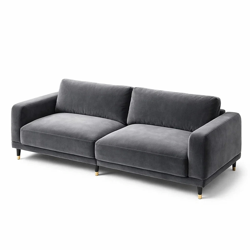3-Sitzer Sofa aus Samtstoff mit Füllung aus hochdichtem Schaumstoff. Beine aus Metall.
